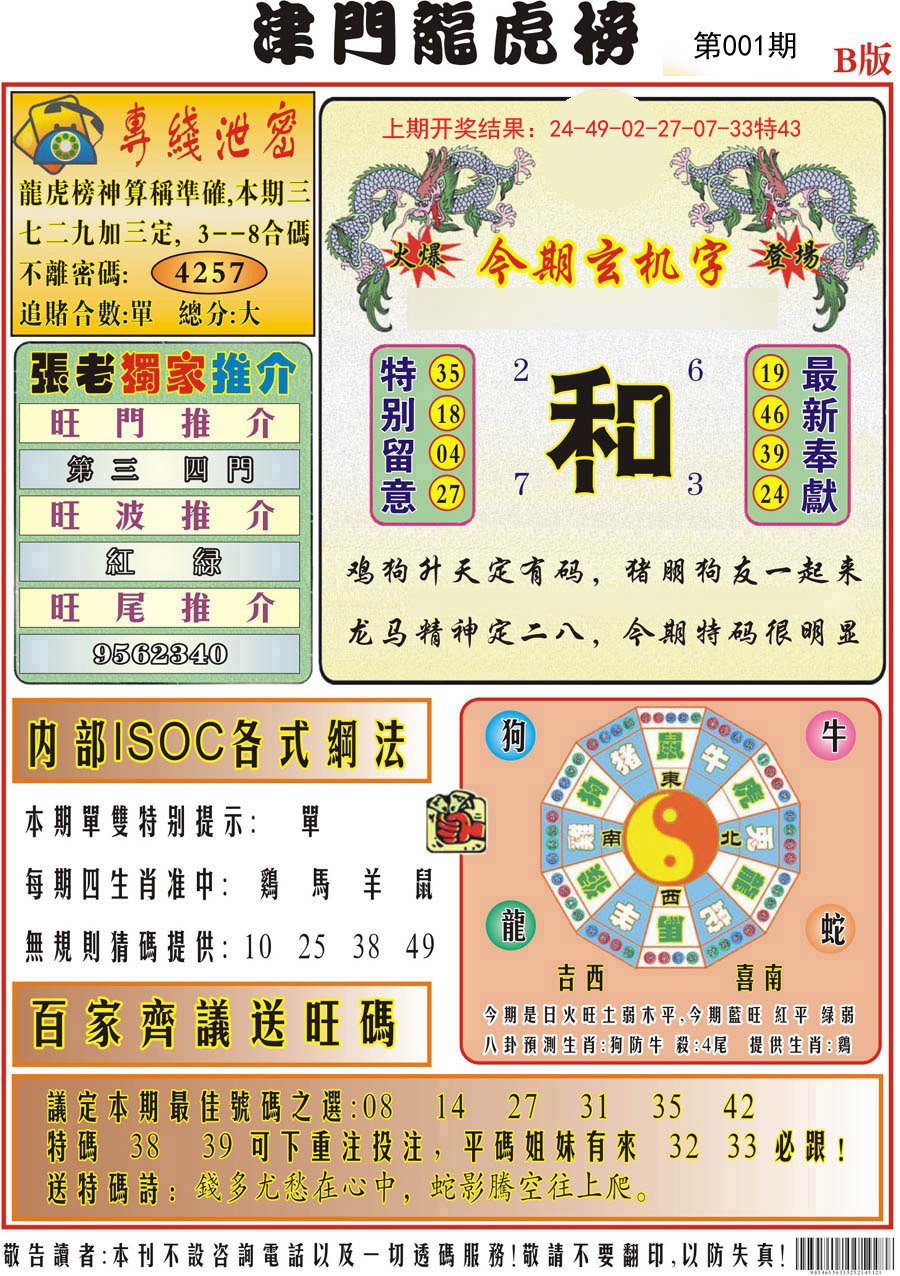 001期津门龙虎榜B[图]