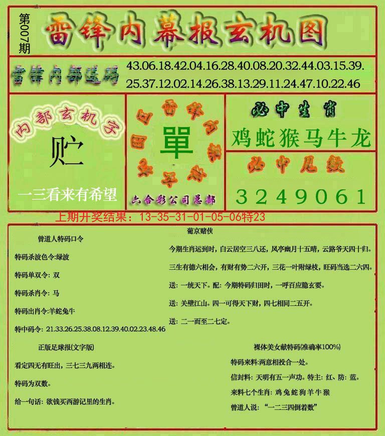 007期雷锋玄机报[图]